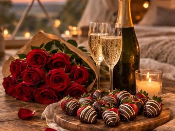 Upon arrival, you will be greeted with a dozen luscious chocolate-dipped strawberries, a dozen roses to set the mood, and a bottle of chilled Prosecco. This package is designed to add a touch of romance to your stay and create those special moments you will treasure forever.
